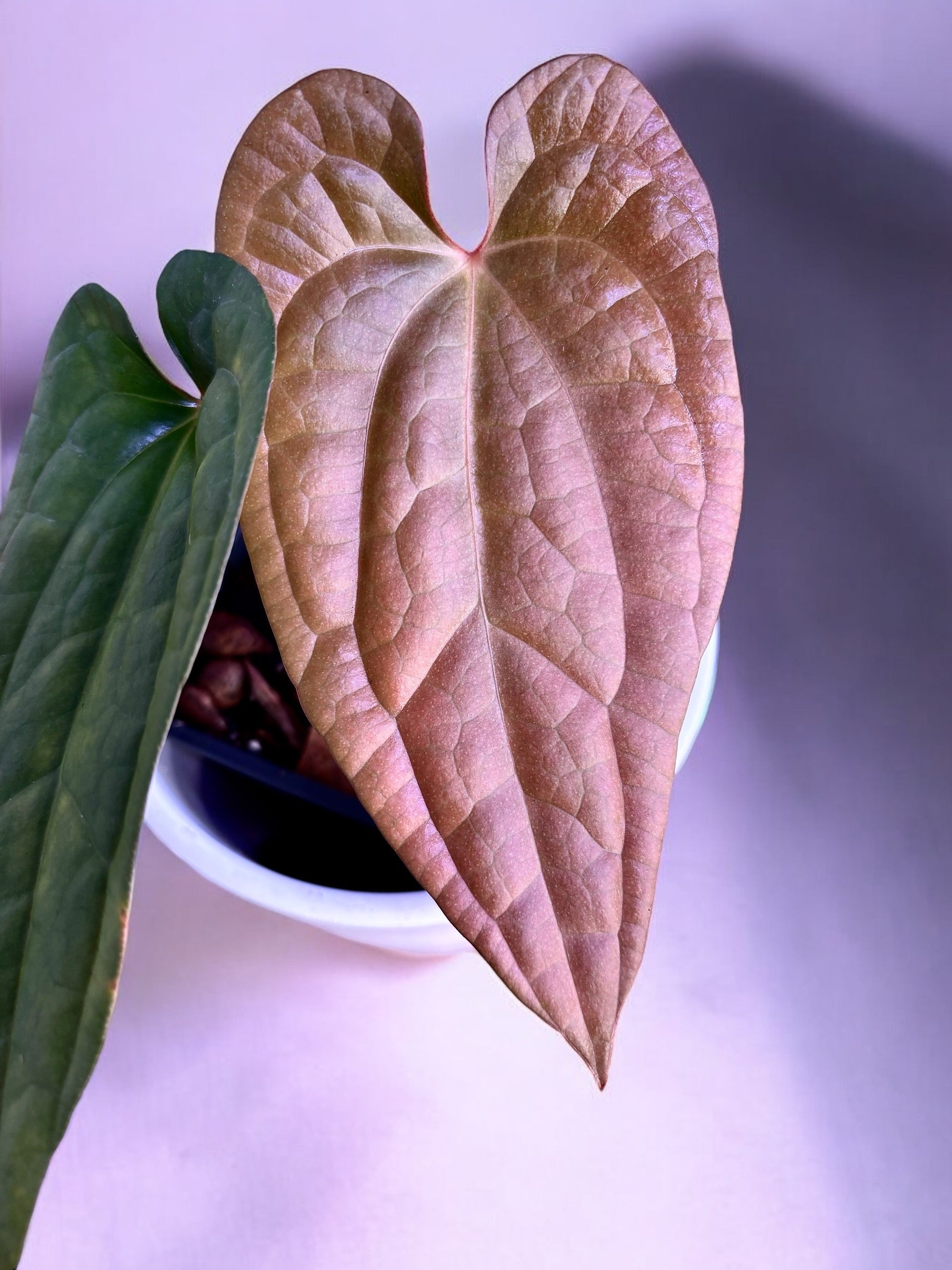 En Plantukas, nos encanta cuando una planta te deja sin palabras, y el Anthurium Fort Sherman x Luxurians es el ejemplo perfecto de elegancia botánica. Este híbrido es la combinación definitiva de dos especies icónicas: las venas profundas y el brillo de terciopelo del Fort Sherman, fusionadas con la textura rugosa y la forma escultural del Luxurians. ¿El resultado? Una planta que parece sacada de una película de fantasía, lista para ser el centro de atención en tu jungla urbana.