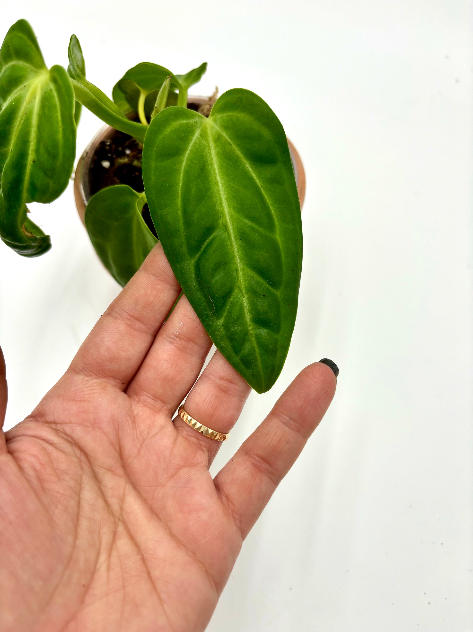 🌞 Luz brillante e indirecta: A tu Anthurium Villenaorum le encanta la luz brillante pero filtrada. ¡Nada de sol directo! Sus hojas aterciopeladas pueden ser delicadas, así que ponlo en un lugar donde reciba mucha luz indirecta para que esas venas plateadas sigan brillando como el tesoro que son.