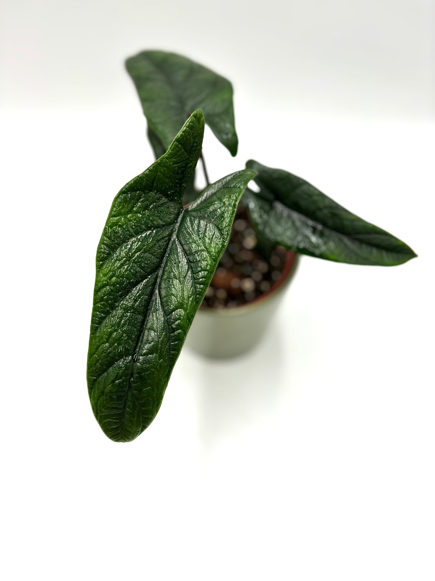 Se você procura uma planta que combine mistério e poder, Alocasia Scalprum é como ter uma espada forjada pela natureza. Com suas folhas alongadas, pontiagudas, verde-escuras e brilhantes, esta alocasia parece pronta para cortar o ar com sua elegância. Sua estrutura única e textura quase aveludada fazem dela uma peça central exótica, perfeita para qualquer coleção que queira se destacar com uma planta que tenha toda a atitude.