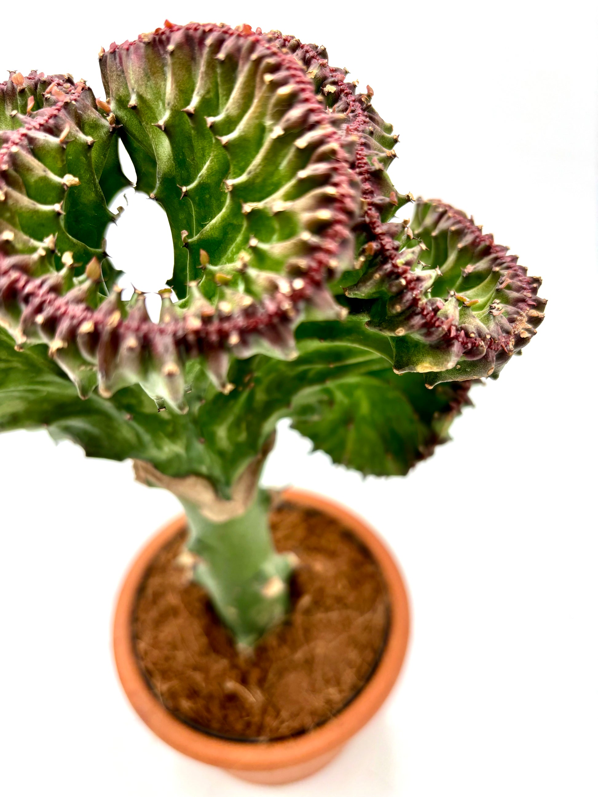Perfeita para colecionadores e amantes de plantas exóticas, a Cristata é uma suculenta de baixa manutenção que rouba a cena. E apesar de sua aparência extravagante, é surpreendentemente fácil de cuidar. É como ter uma obra de arte moderna em casa, sem complicações!